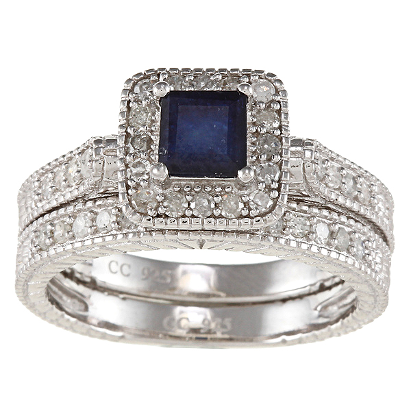 Asscher Cut Princess 5 Stone Band In Diamonds Blue Sapphires ...